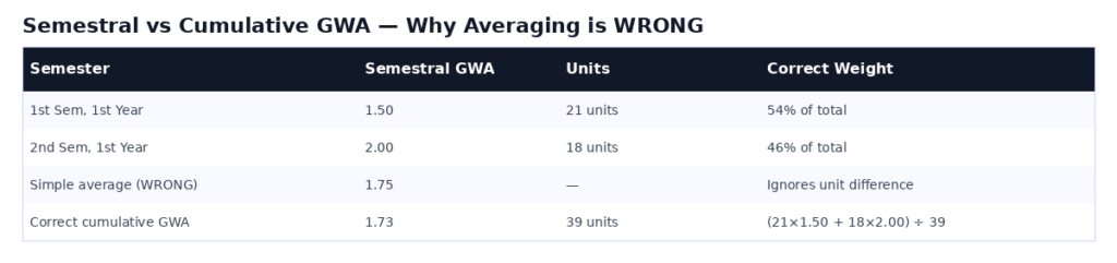 Mistake 2: Averaging Semestral GWAs for Cumulative GWA